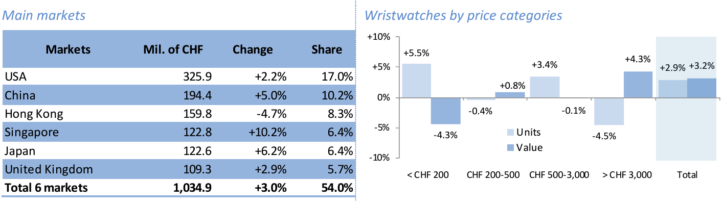 The United States and the majority of Asian and European markets exhibited growth, with the US market expanding by 2.2%. This positive trend in diverse markets indicates a robust demand base for Swiss watches, resilient against the backdrop of global economic uncertainties. However, exceptions such as Hong Kong and Germany, which saw declines of 4.7% and 11.4% respectively, reflect localized economic challenges or shifts in consumer preferences. Meanwhile, Singapore and Qatar emerged as bright spots, with Singapore enjoying a 10.2% uptick and Qatar witnessing a staggering 118.4% increase, likely buoyed by the Doha Jewellery and Watches Exhibition and the anticipation of major events in the country.