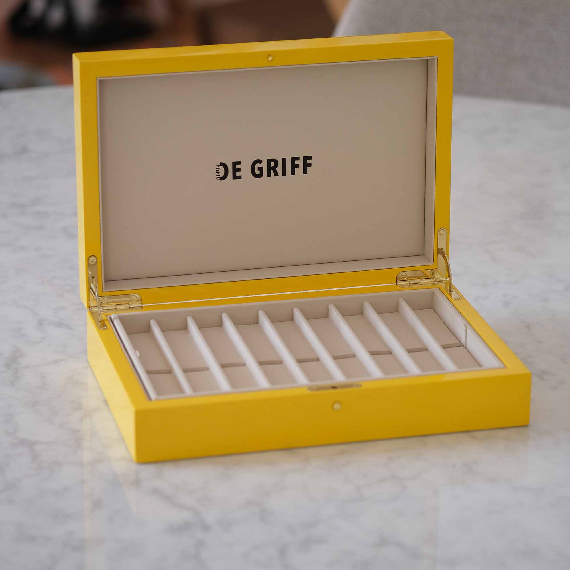 Each box has been crafted with the same attention to detail and quality materials that you’ve come to expect from us, and in our signature DE GRIFF yellow. However, quantities are limited for now, and once they’re gone, we can’t guarantee a second run—so if you’ve had your eye on one, don’t hesitate. That said, we’re keeping a close watch on demand, and if there’s enough interest, we may do a second round of production. If you miss out this time, feel free to reach out and we may consider making a list for the second batch.
