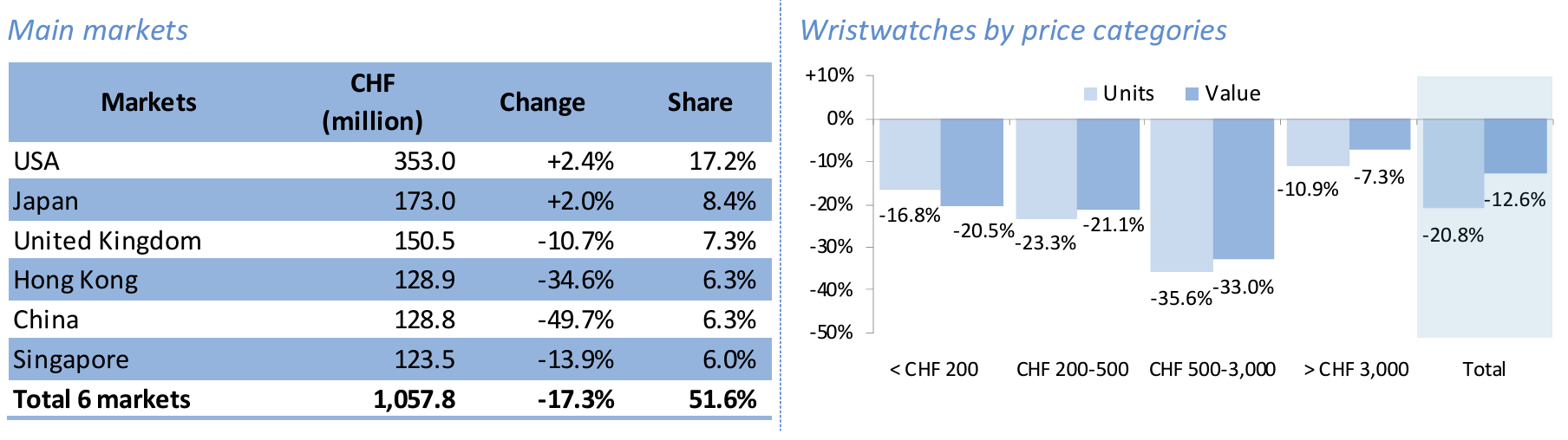 Other parts of Asia also reported significant contractions. South Korea (-19.8%), Taiwan (-29.8%), and Thailand (-34.6%) are key players in the regional luxury market, but the region’s overall economic slowdown has clearly affected demand for high-end timepieces.