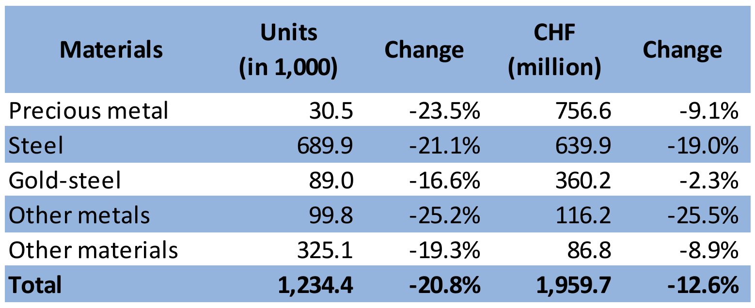 The performance across materials tells an equally compelling tale. Steel, often seen as the backbone of Swiss watch manufacturing due to its versatility and widespread appeal, was disproportionately affected. Exports of steel watches fell by 19.0% in value and a more alarming 21.1% in the number of units shipped. While steel watches span a wide range of price points, they are particularly prominent in the mid-market luxury segment—a space that has recently faced increasing pressure.