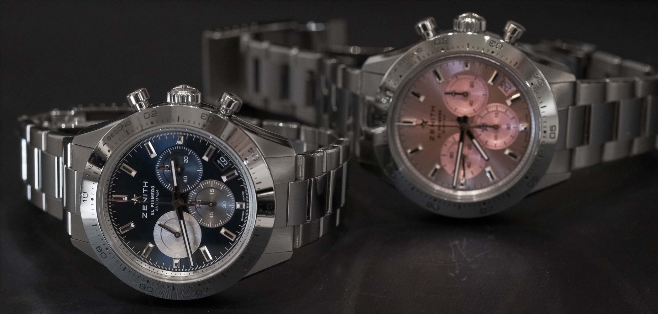 Both models feature the same case dimensions, the same sapphire crystal on both sides, and the same robust stainless-steel bracelet. And of course, the same El Primero movement. Note the similar-looking yet different bezels.